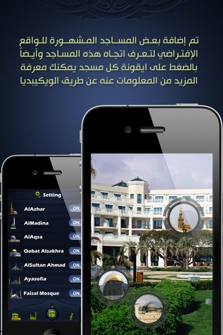 عرض اتجاه بعض المساجد حول العالم ومعلومات عنها في الواقع الإفتراضي.